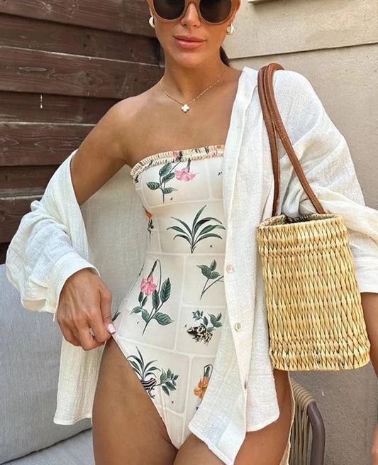 OLYVIA Floral Lace-Up Bandeau One-Piece Swimsuit