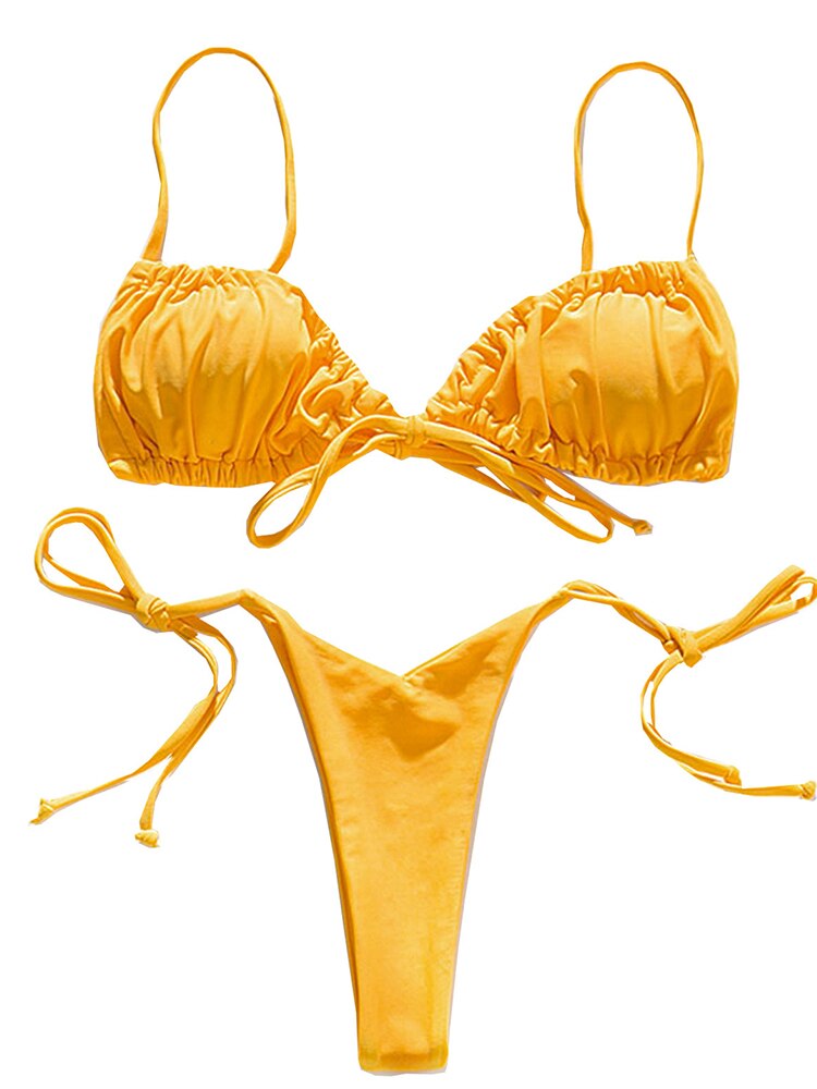 Yellow Tie Up Thong Bikini Set